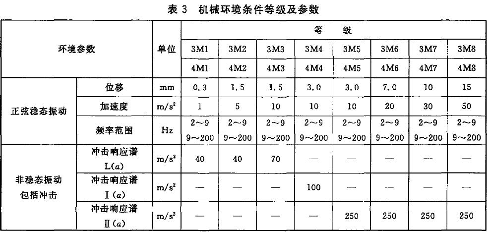 3.9 機(jī)械環(huán)境條件各等級的環(huán)境參數(shù)值間表3 。典型沖擊響應(yīng)頻譜見圖1.